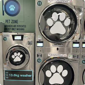 We love pets as much as you do. That’s why we’ve created a dedicated pet-only washing/drying zone, separate from our regular machines.